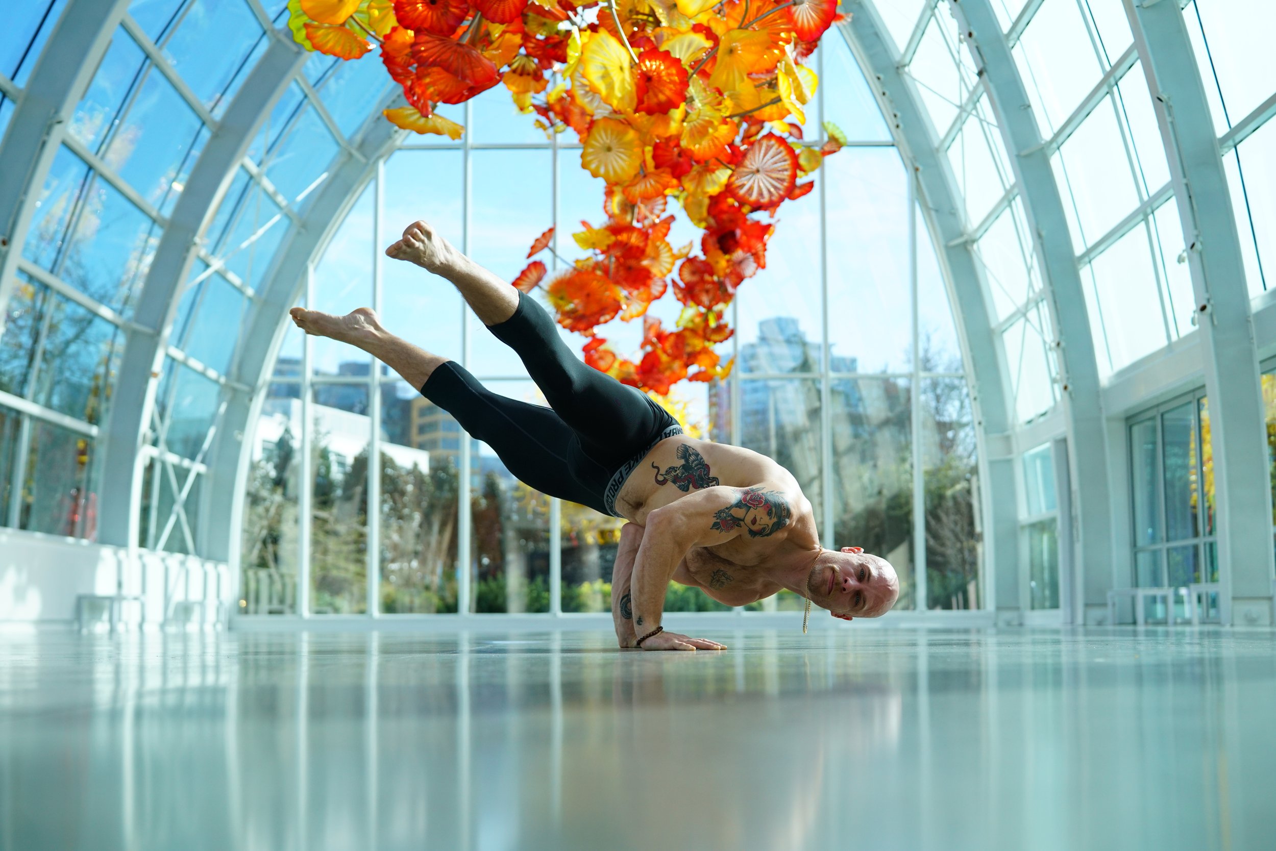 He is constantly using a variety of different movements and exercises that target multiple areas of the body simultaneously, with the intention of bringing strength and harmony within the whole body.