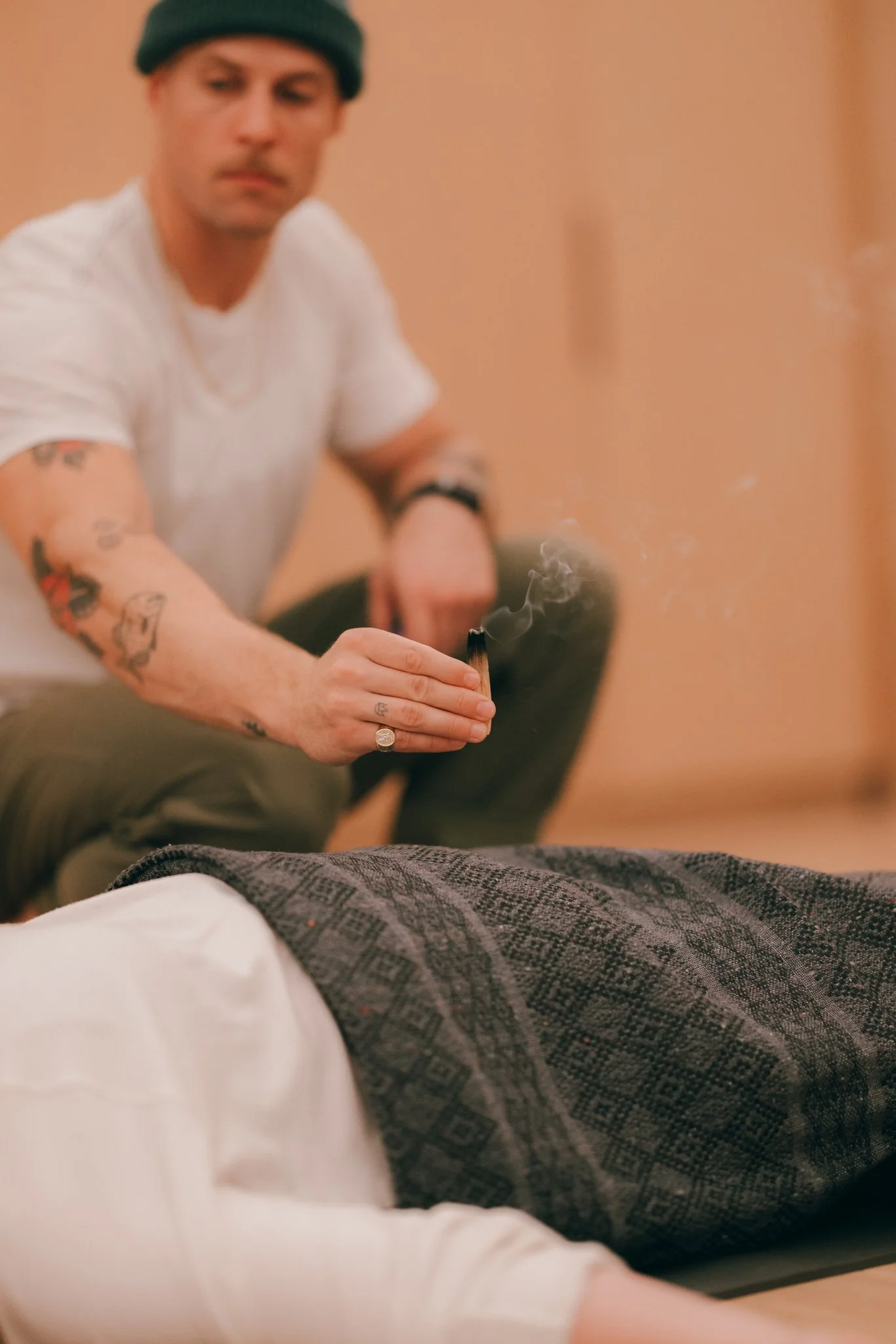 In a breathwork session, you will be guided in a 3-part breathing technique – a 2-part inhale into the abdomen and chest, followed by a relaxed exhale.